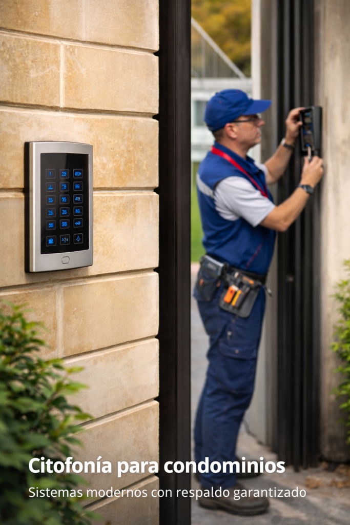La citofonía para condominios permite controlar accesos de manera segura y eficiente, mejorando la comunicación entre portería y residentes. Instalamos sistemas modernos, análogos o digitales, con excelente calidad y respaldo garantizado, asegurando una solución confiable, organizada y duradera para la seguridad del condominio.